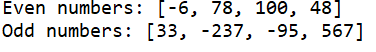 - Separate the numbers into two ArrayLists, one containing odd numbers and other containing even numbers, and print them.