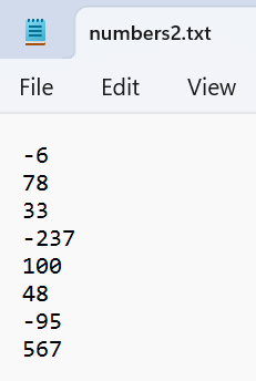 Write a Java program that reads integers (both positive and negative) from a file (named numbers2.txt) and does the following: