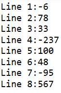 Sample Output (a): Prints the line number of each number along with the number itself.