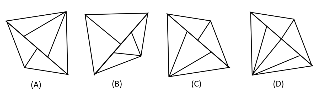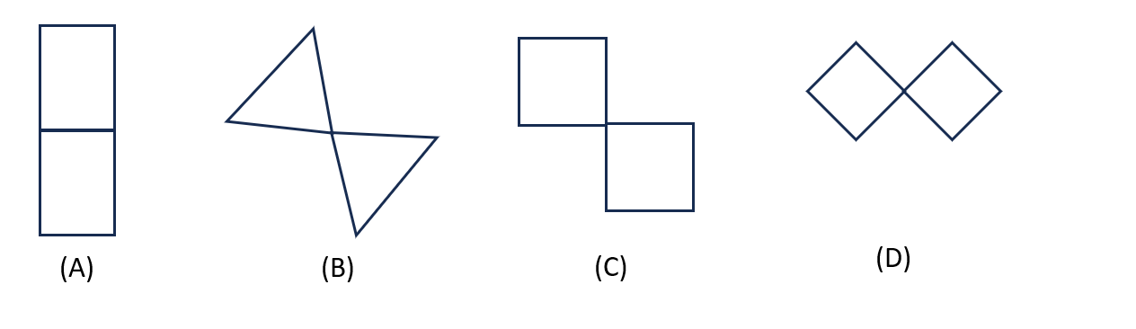 Explanation: Except (A), all other shapes are connected to each other only at a single vertex (point). In figure (A), they are connected through a side.