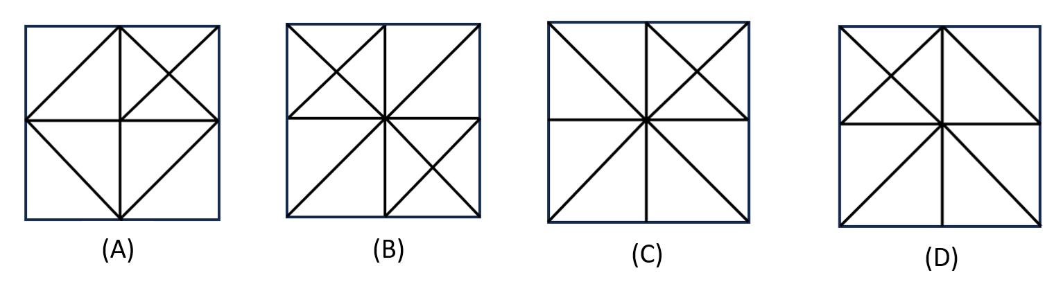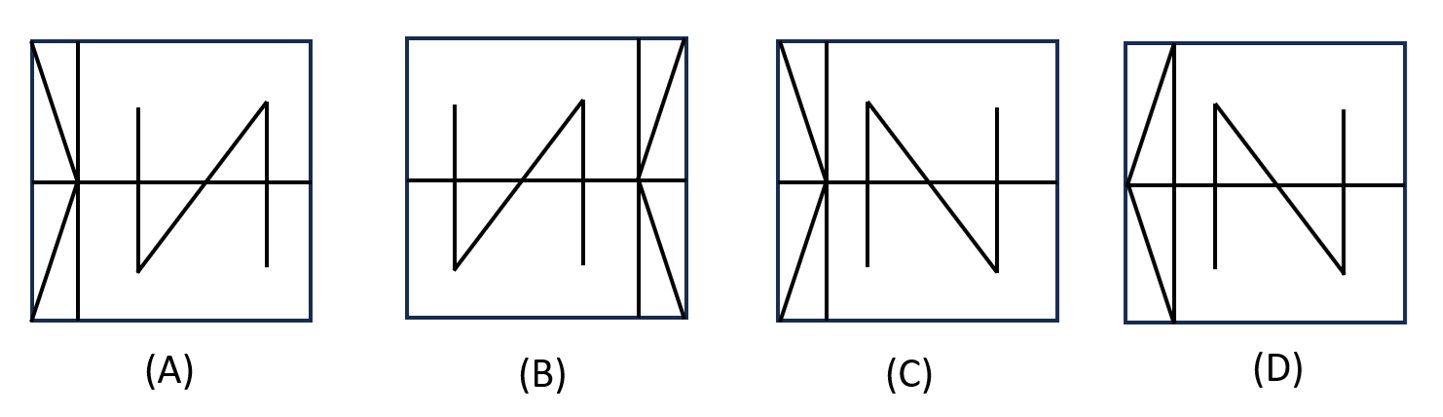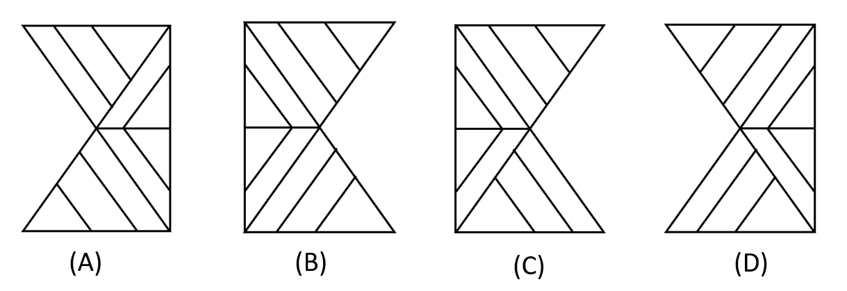 Explanation: All figures, except figure (D) are same figures, placed rotated/flipped or are mirror images.