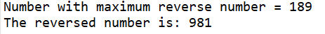 System.out.println("Number with maximum reverse number = " + maxNum);