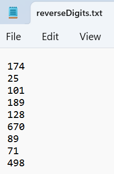 Sample Input: reverseDigits.txt