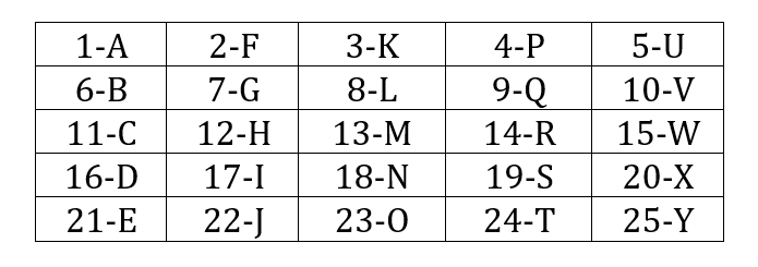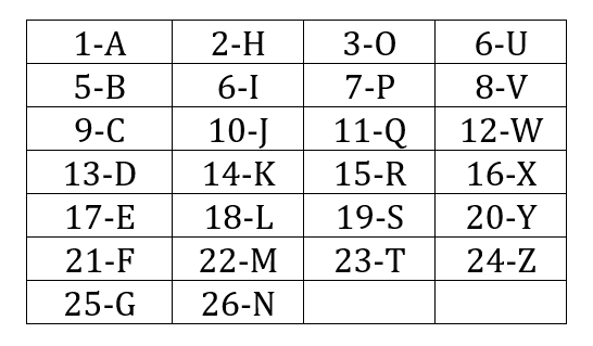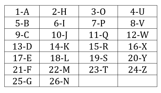 Use the codes given in matrix given below and decode the following: 12-5-2-2-13-1-18View Answer