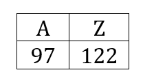 Explanation: The uppercase alphabets are coded based on the ASCII codes for lowercase alphabets.