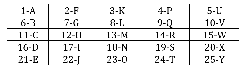 Use the codes given in matrix given below and code the following: 1-15-23-6-9-18-17View Answer