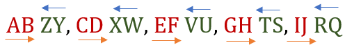 Explanation: For every term, first two characters are in increasing sequence of alphabets and last two characters are in decreasing sequence of alphabets.
