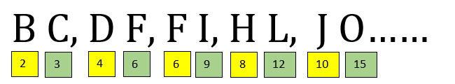 Explanation: Follows Fibonacci series in the alphabet sequence.