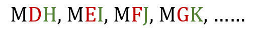 Explanation: In every term, the first character is same; second character is increasing starting from D and third character is increasing starting from H.