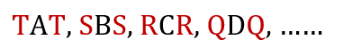 Explanation: In every term, the middle character is increasing starting from A; first and last character in each term are same; but are decreasing order starting from T.